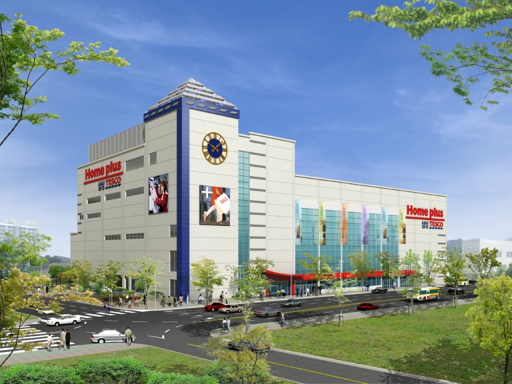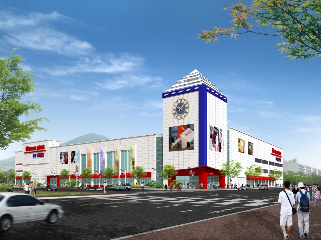 circulation for distribution, expansion of resting space for employee and maximized recognition using symbolic figures. SIAPLAN designed 15 Home Plus stores in Korea.