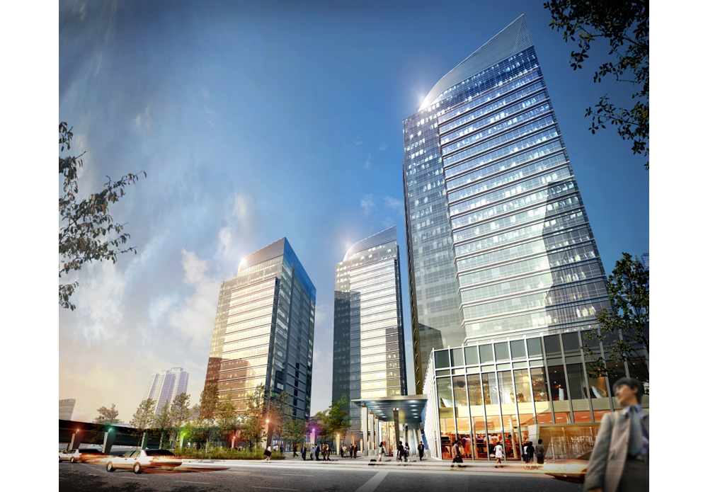 are planned along the street and on the lower floors that support the towers.