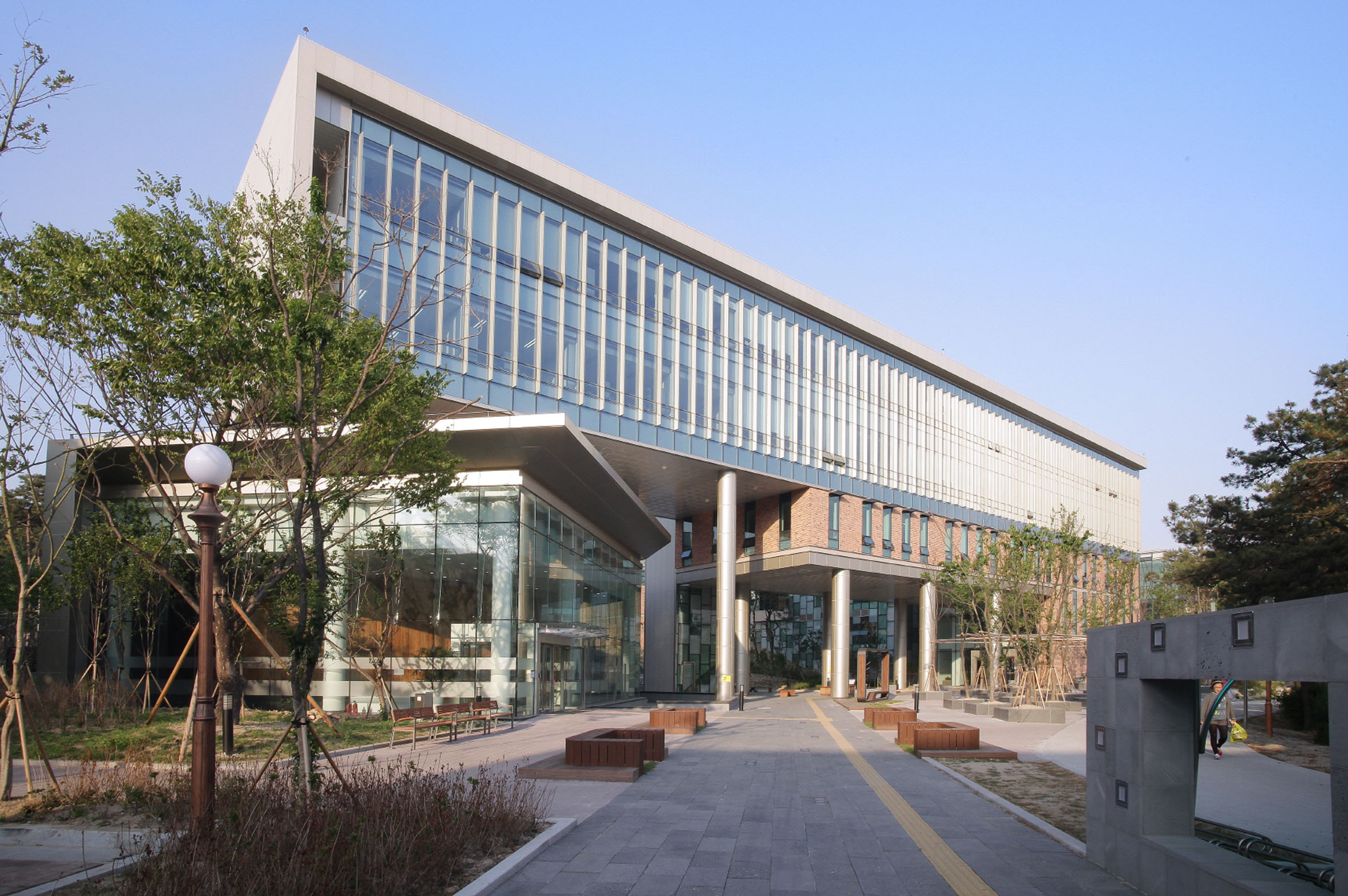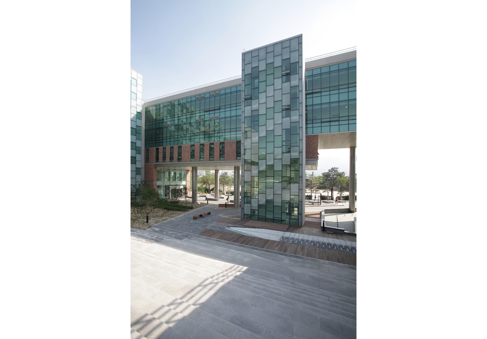 Professor rooms in the upper floors have curtain wall which expresses the tradition of the campus and future-aiming